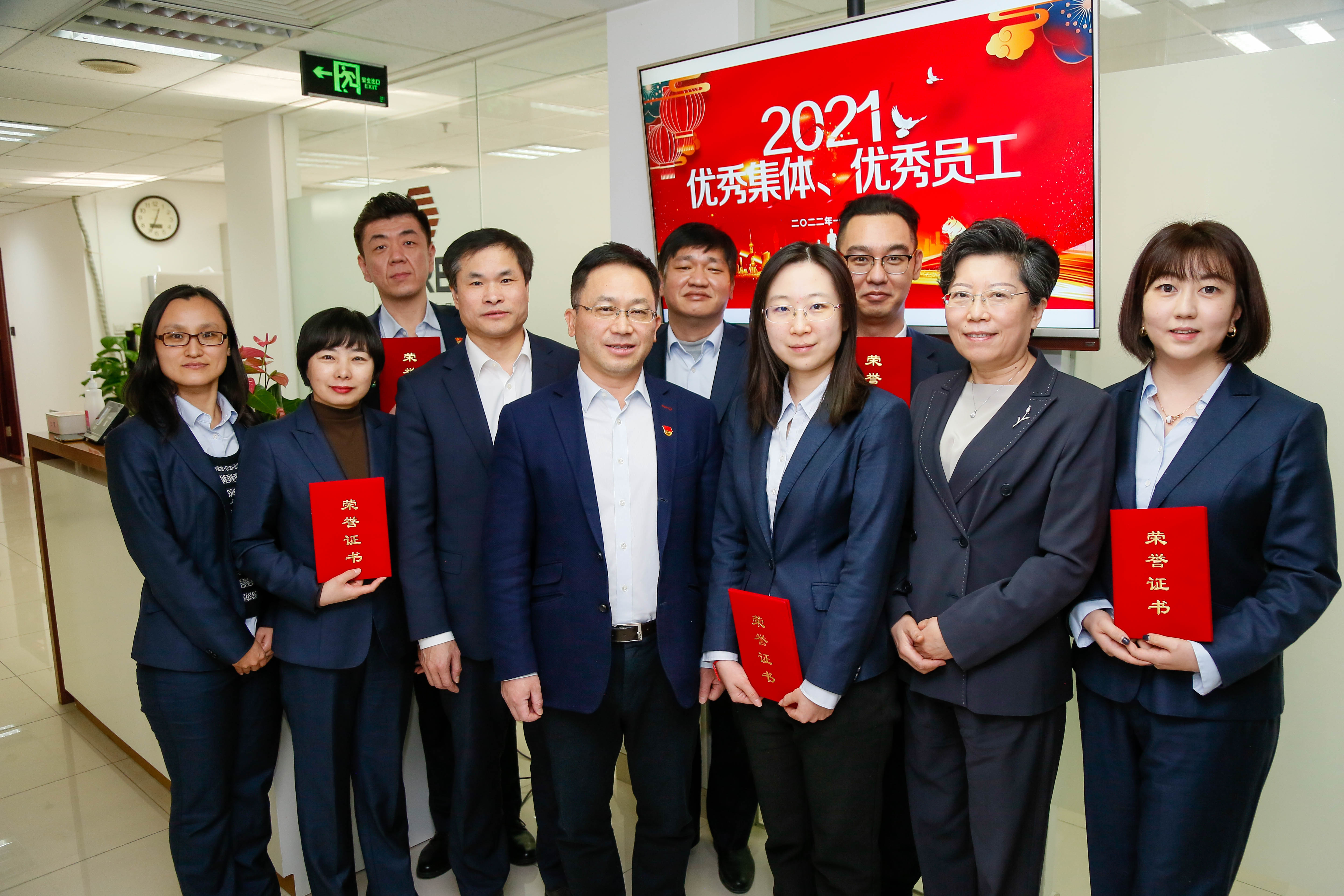 公司領(lǐng)導(dǎo)向受表彰的2021年度優(yōu)秀集體和個(gè)人頒發(fā)榮譽(yù)證書。