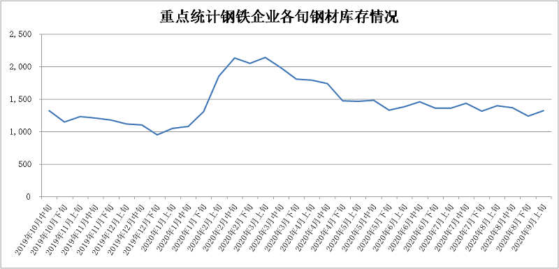 2020年9月上旬,重點統(tǒng)計鋼鐵企業(yè)共生產粗鋼2136.56萬噸、生鐵1896.16萬噸、鋼材1999.30萬噸、焦炭319.28萬噸。本旬平均日產,粗鋼213.66萬噸,環(huán)比下降1.09%、同比增長6.73%;生鐵189.62萬噸,環(huán)比下降1.55%、同比增長4.82%;鋼材199.93萬噸,環(huán)比下降8.86%、同比增長6.50%。