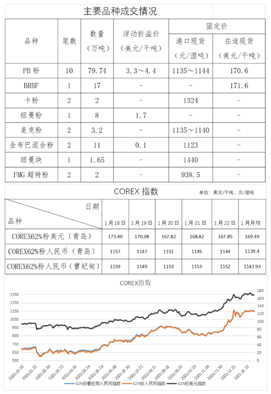 1月18日~22日成交35筆共150.62萬噸,其中在途6筆共102萬噸,港口29筆共48.62萬噸。
