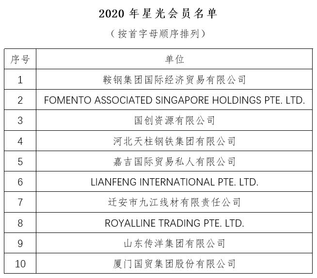 在此,北鐵中心向上述優秀會員單位致以崇高敬意和衷心感謝!期待與廣大會員單位繼續攜手并肩,加強合作,互利共贏,為鋼鐵和礦石行業的穩定健康發展做出更大貢獻。