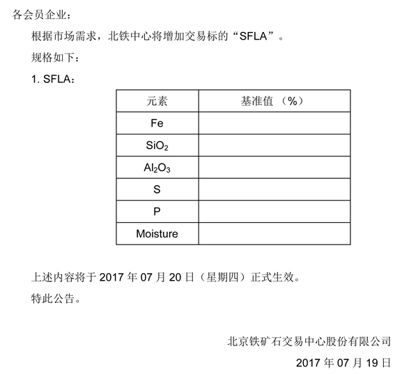 關于修訂《北京鐵礦石交易中心鐵礦石現貨點價交易實施辦法(2017.07)》的公告