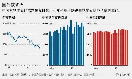 鐵礦石價(jià)格今年已下跌40%,但這不是中國的原因,而是因?yàn)橛砂拇罄麃喴I(lǐng)的鐵礦石大幅增產(chǎn)導(dǎo)致該行業(yè)供應(yīng)嚴(yán)重過剩,即使體量巨大的中國鋼鐵業(yè)也無法消化如此大規(guī)模的產(chǎn)量。