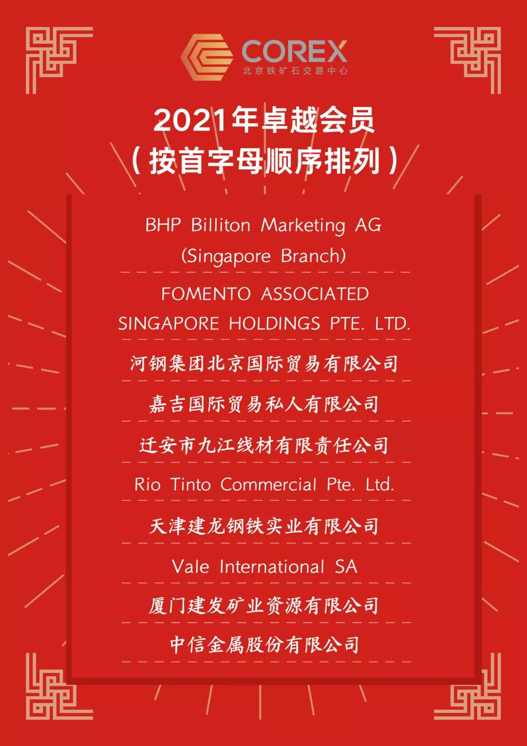 在此,我們向以下會員頒發(fā)“2021年卓越會員”、“2021年星光會員”、“2021年曹妃甸指數(shù)數(shù)據(jù)提供優(yōu)秀單位”獎項(xiàng),感謝各位會員在過去一年中為平臺發(fā)展做出的卓越貢獻(xiàn)。