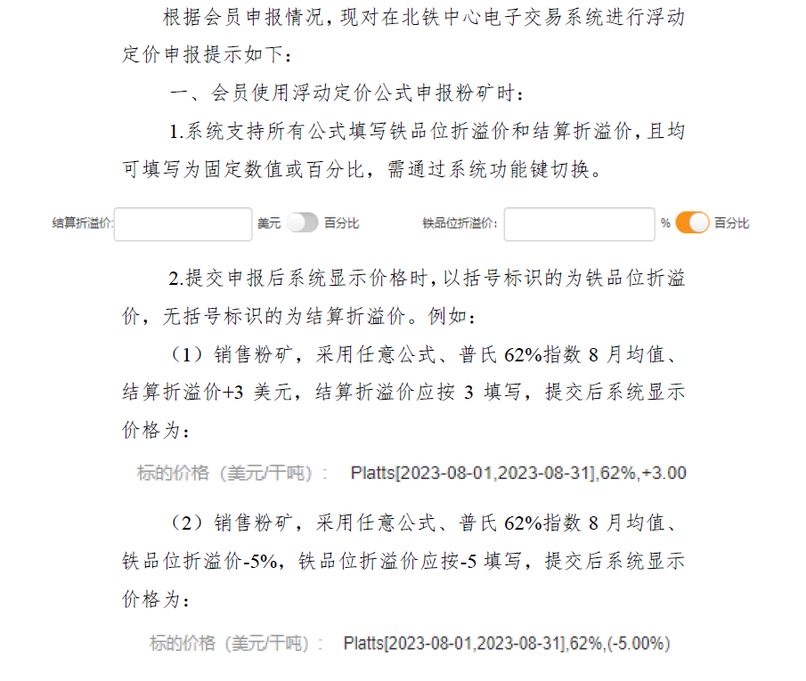 關于浮動定價申報的提示