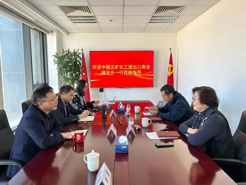 12月21日,中國五礦化工進(jìn)出口商會副會長錢景汾、礦產(chǎn)品部主任陳明亮到訪北京鐵礦石交易中心,與公司總裁游松就鐵礦石市場現(xiàn)狀、中國鐵礦石現(xiàn)貨交易平臺運(yùn)行情況等共同關(guān)心的話題開展座談交流。